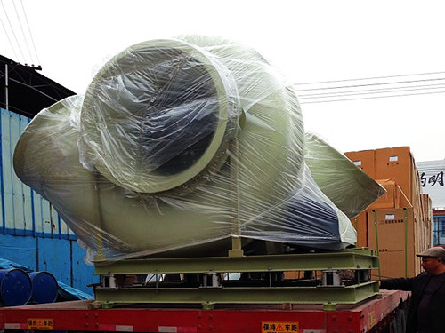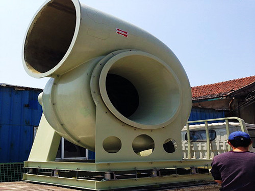 從風(fēng)機(jī)的型號(hào)上來(lái)說(shuō),7番風(fēng)機(jī)屬于型號(hào)偏大的類型。該型號(hào)的風(fēng)機(jī)風(fēng)量范圍是55000cmh-70000cmh左右,因風(fēng)機(jī)的葉輪和外殼尺寸重量都偏大,所以需要使用碳鋼材料制作風(fēng)機(jī)架子。下面是兩臺(tái)7番玻璃鋼離心風(fēng)機(jī)發(fā)貨圖。從圖中可以看出,方向?yàn)?80°的風(fēng)機(jī)在架子和外殼之間使用了增強(qiáng)材料進(jìn)行固定。主要是防止外殼過(guò)重導(dǎo)致傾斜的情況發(fā)生。